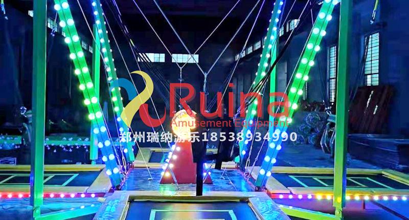 常規(guī)四人蹦極他沒(méi)有裝飾也沒(méi)有燈光的,就是四個(gè)面小孩在上面玩耍的,但是四人發(fā)光蹦極就不是這種的了,他這邊除了有豪華轉(zhuǎn)馬裝飾外,這邊還有燈光的,并且燈光的效果是出乎意料的,如果晚上經(jīng)營(yíng)的話,這是一個(gè)不錯(cuò)的選擇。