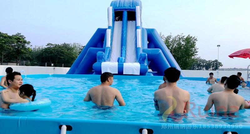 3、支架游泳池的游玩方式多樣,支架水池即可以和一些動(dòng)物卡通人物造型的水上滑梯組合使用,還可以將不同規(guī)格的支架泳池通過(guò)各種充氣模型玩具組合,組成一個(gè)集娛樂(lè)性、競(jìng)賽性的水上沖關(guān)闖關(guān)設(shè)備,可以調(diào)整支架游泳池位置來(lái)改變水上沖關(guān)關(guān)卡設(shè)置,豐富水上沖關(guān)的趣味性和耐玩性。